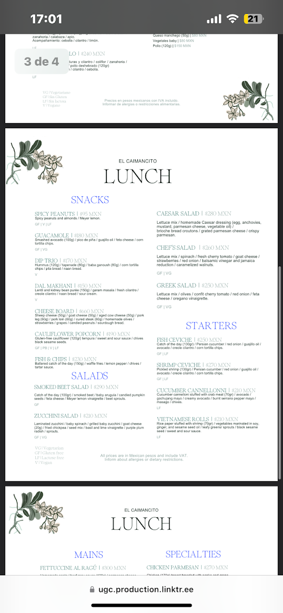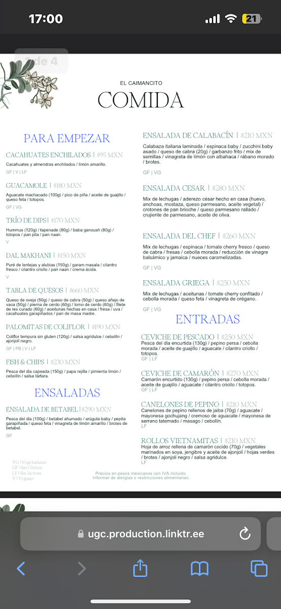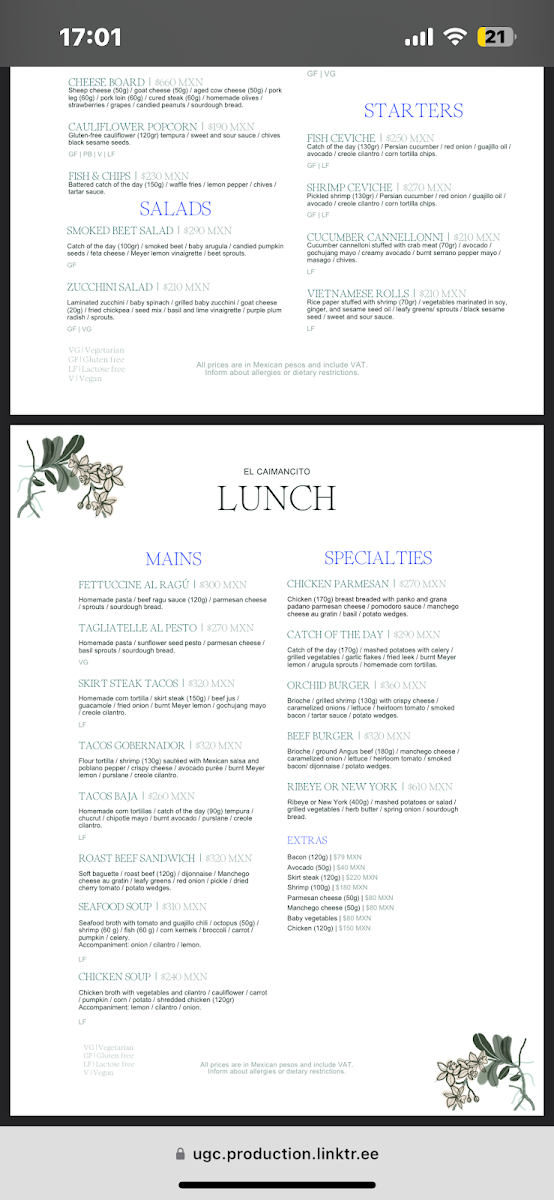 The menu at El Caimancito Restaurant & Beach Club offers a relaxed, casual selection that complements its stunning beachfront setting. Guests can expect a variety of fresh, thoughtfully prepared dishes and refreshing drinks designed to be enjoyed in moments of leisure, whether catching a sunset or soaking up the sun by the water.